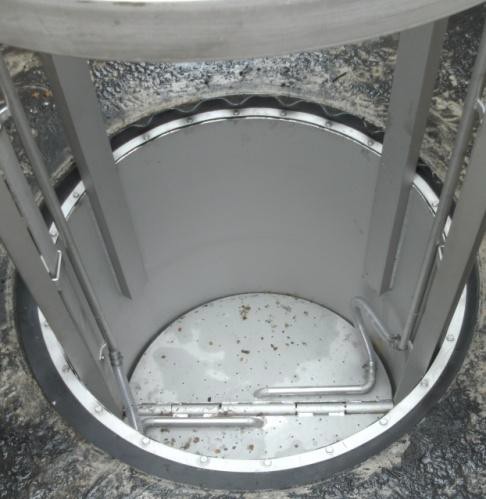 为了清空收集篮,要解开压力软管,用提升装置将篮子完全从池子里拉出来,砂砾和碎片保留在篮子里,残留水通过收集篮的底部排出。将篮子清空倒入垃圾箱或直接倒入垃圾车。拉动中间的解锁杆就可以将栅格折叠而打开,砂砾会从底部落下。篮子清空以后,旋转栅格,将篮子放回池子里。等重新接上对压力耦合,砂砾收集器可以准备工作了。