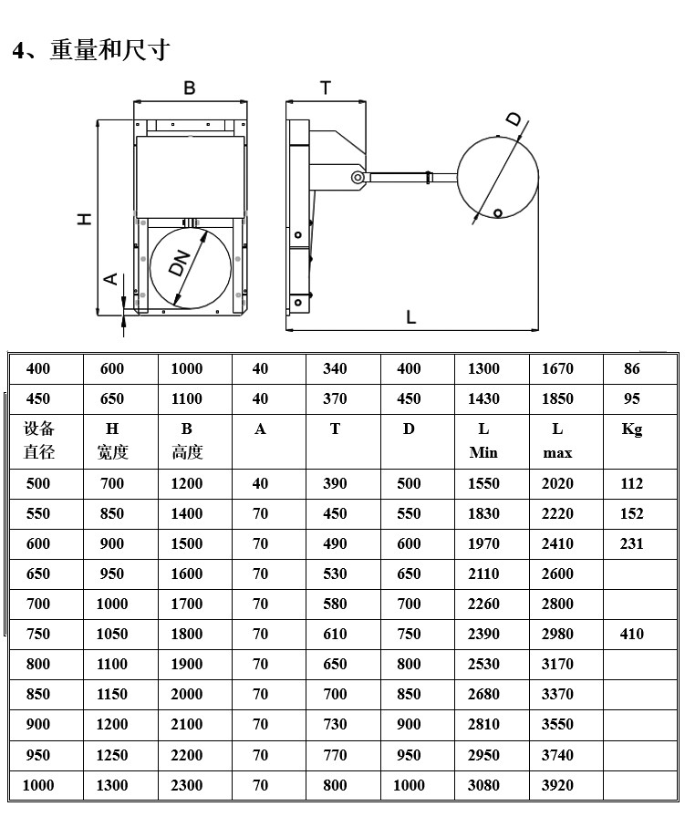 如果您需要任何特殊的尺寸,请联系我们。如果有可能的话,设备安装的开口需要能够在DN500以上。